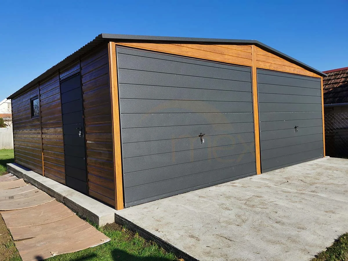 Ponadto rozważ także kwestię bramy. Jeżeli zależy Ci na tym, aby garaż zajmował jak najmniej miejsca, postaw na modele z bramą uchylną. Jest ona zbudowana tak, aby po otwarciu znaleźć się na prowadnicach, zamontowanych tuż pod sufitem. Poza tą opcją otrzymasz w Stalmex też garaże blaszane z bramą dwuskrzydłową, czyli z klasycznym mechanizmem – niezmiennie wielu konsumentów stawia właśnie na nią, ze względu na prostotę i funkcjonalność. Poza tym istnieje możliwość dodania do niego furtki czy okna – wszystko zależy od Ciebie i Twoich potrzeb!